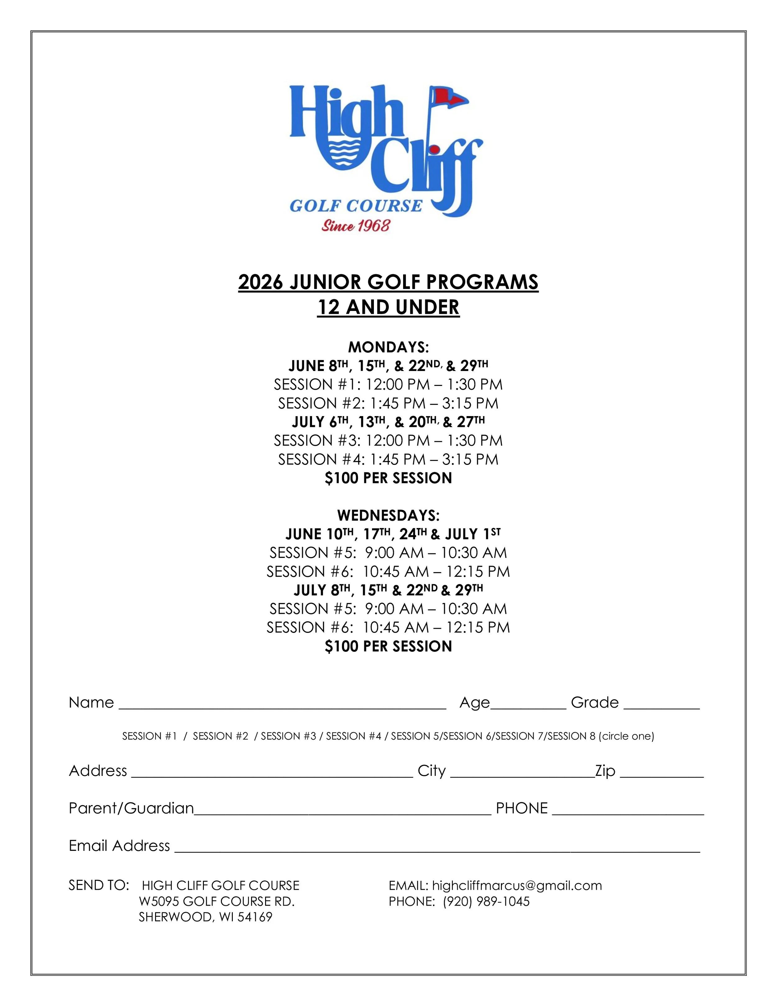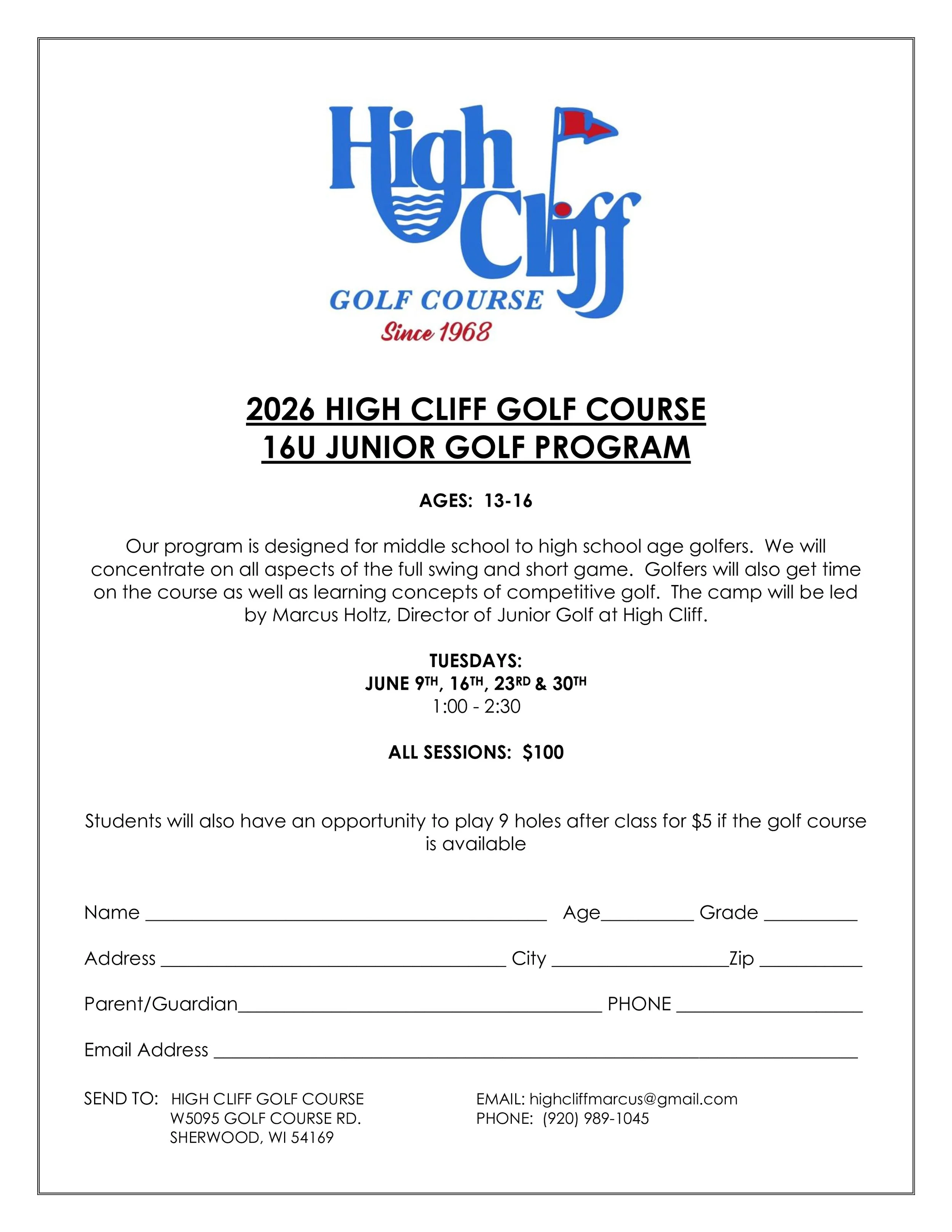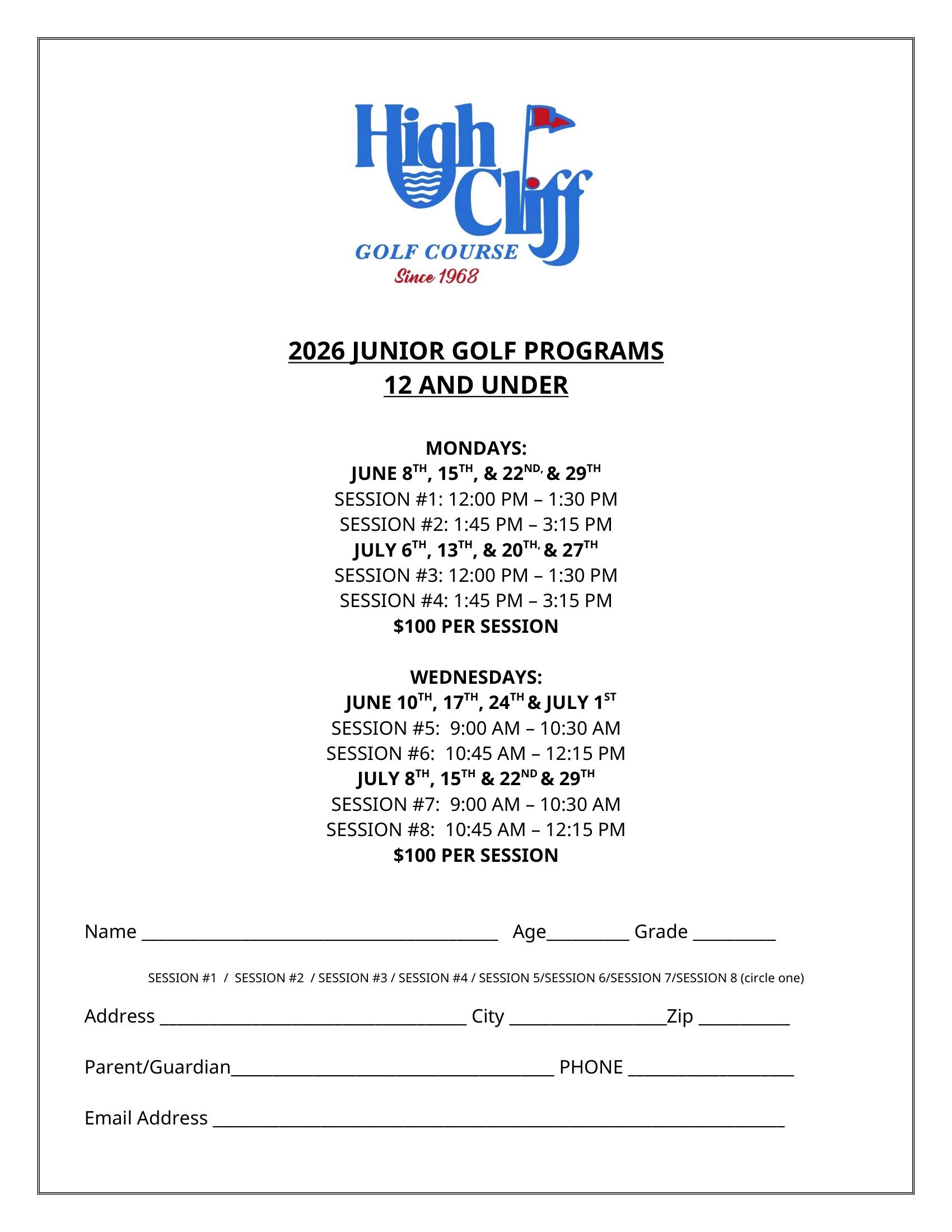 Junior Golf Our Junior Golf classes are designed for golfers of all abilities. Get your child started with the great game of golf today. Click here for 12u registration form & click here for 16u registration form.